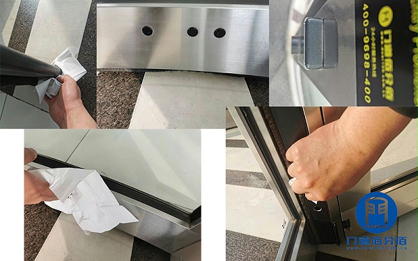 2.对两翼自动旋转门包饰进行清洁,对两翼自动旋转门展示箱内进行清洁这里请广大客户注意应好好保存好两翼自动旋转门展示箱锁,并且不可私自往展示箱内容增加新的东西以免两翼自动旋转门因展示箱增重过多产生故障,如要添加应在门道佰分佰的指导下进行。